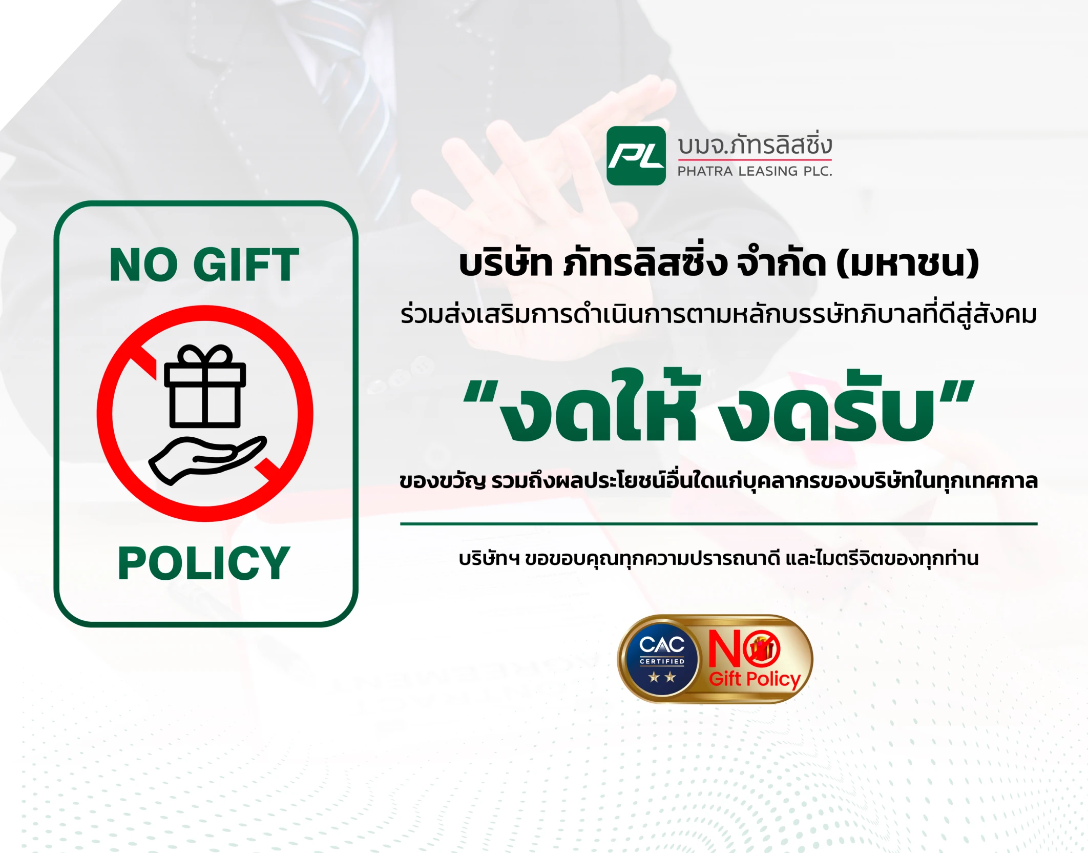 Patra Leasing Public Company Limited (PL) is committed to conducting business with integrity, transparency, and accountability in line with the principles of Good Corporate Governance and the Company's Anti-Corruption Policy.